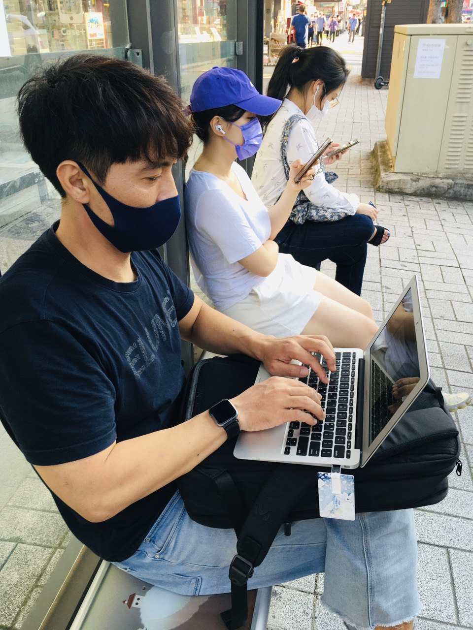 버스를 기다리는 이정열 활동가의 모습